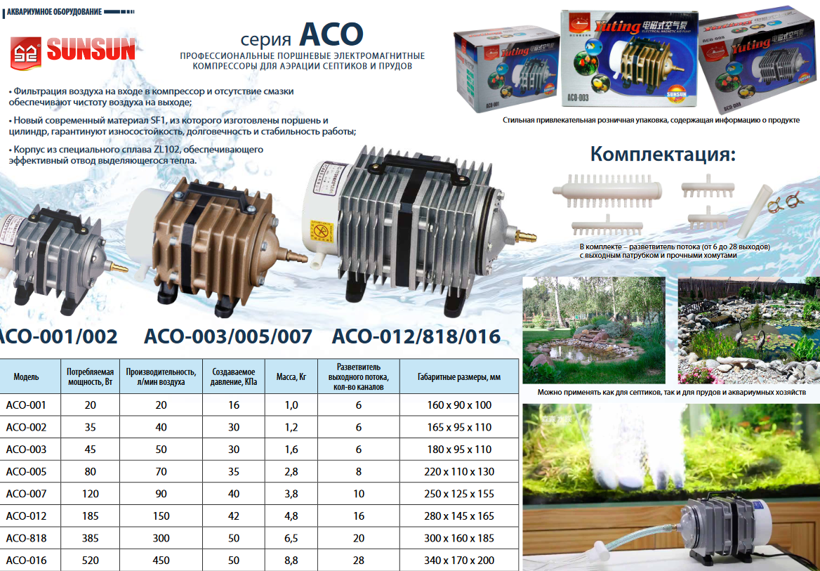 - Компрессор от легендарного бренда SUNSUN, который больше тридцати