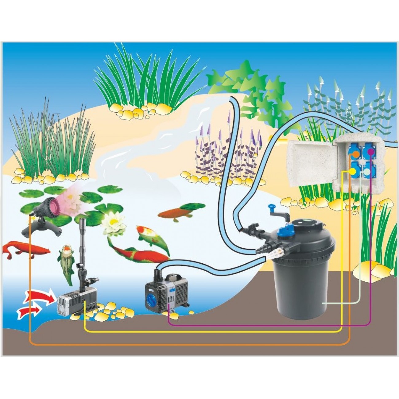 Розетка садовая "камень" влагозащищенная на 4 гнезда CSB-104 , 433 Мгц, 2500 вт, 220 В, 10 м кабель, кг, 190х160х260 мм,