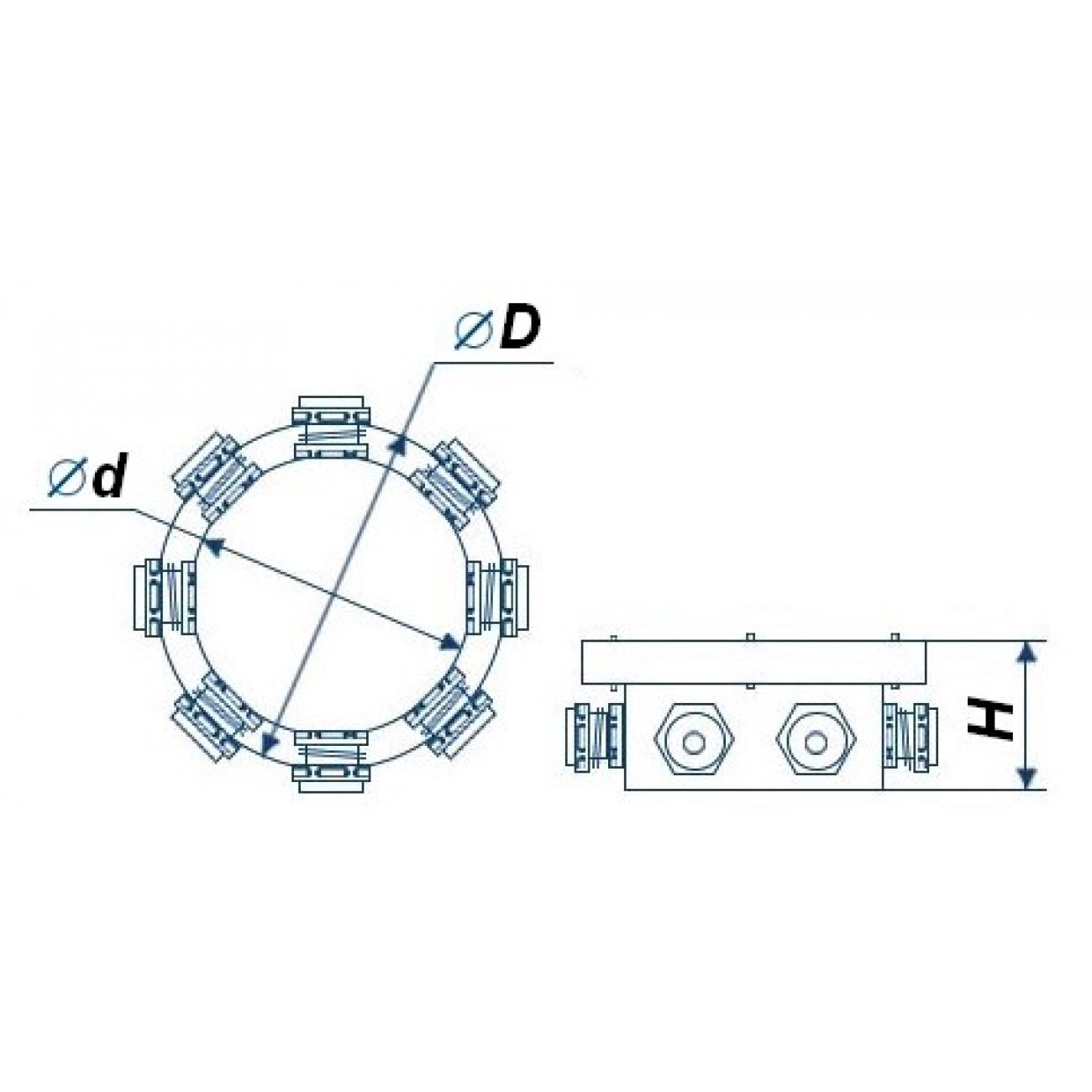 Подводная клеммная коробка с 4-мя герметичными кабельными вводами для кабеля ф 6-7,5 мм. Служит для обеспечения герметичности кабельных соединений расположенных под водой.